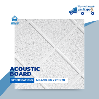 (SIRIUS1) ACOUSTIC BOARD- Also known as Acoustic Mineral Fiber Ceiling TilesThickness: 15mm (5/8)Sizes: 2ft x 2ft, 2ft x 4ftDesigns:✅ Milano✅ Fissured✅ Textura