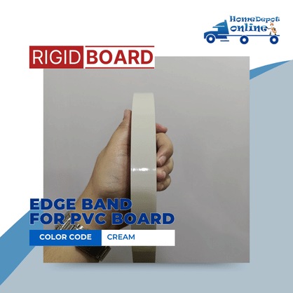 EDGE BAND FOR PVC BOARD (50 meters per roll)Brand: RIGIDNote: Kindly coordinate with your sales representative before checking out your order.✅ Water-resistant / Waterproof✅ Eco-FriendlyDimension:1x22mm
